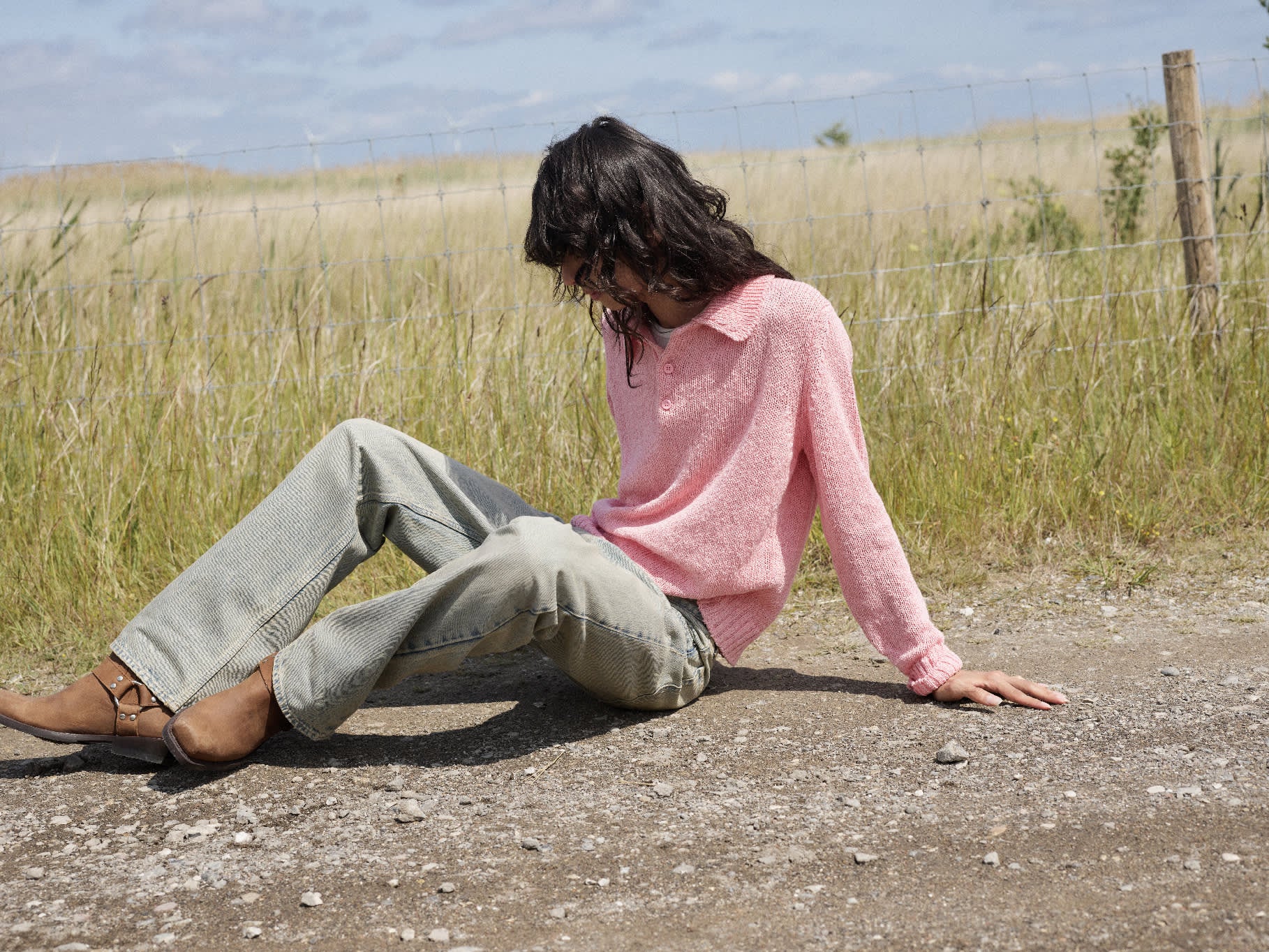 Polo collared linen knit