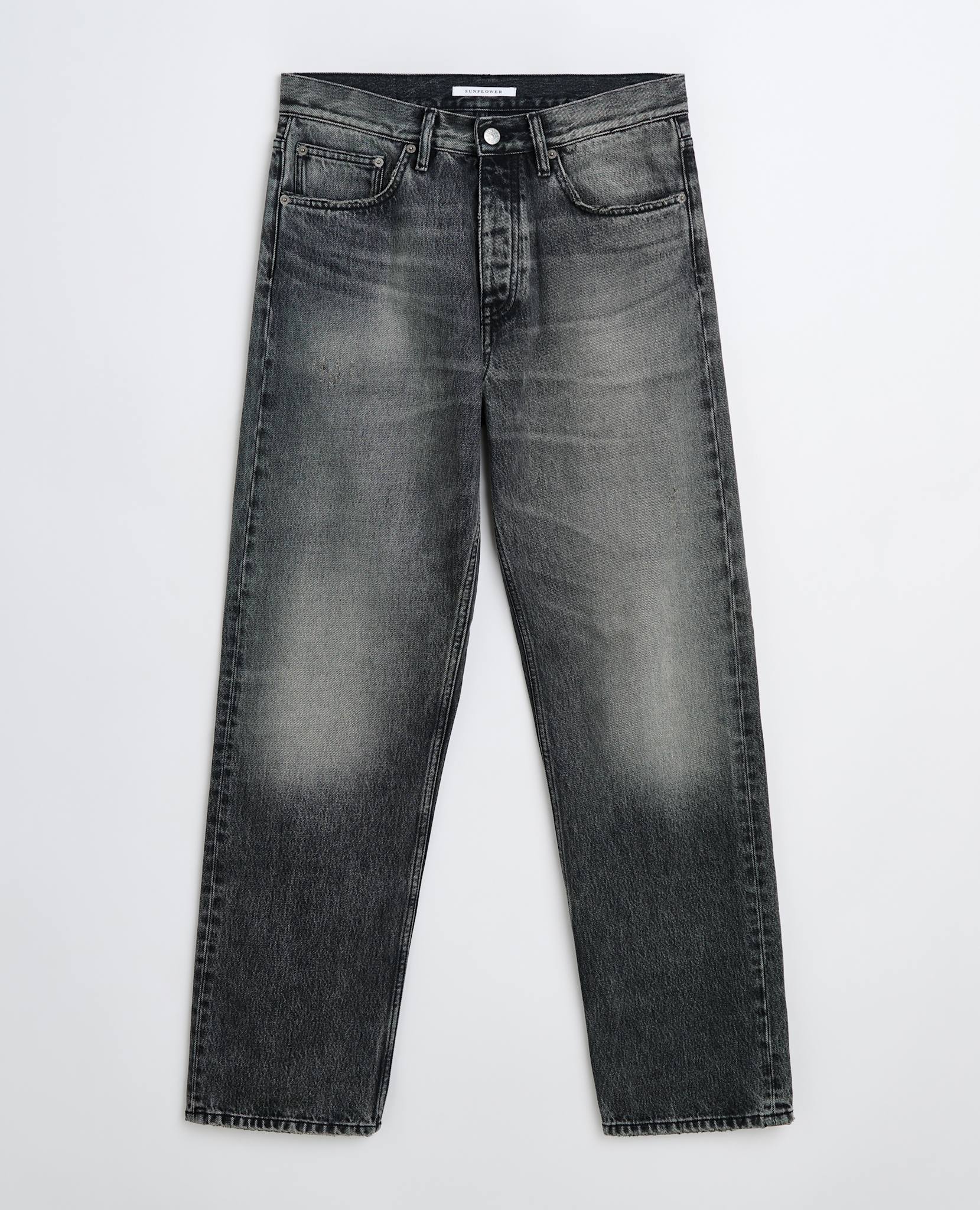 Loose fitted 5 pocket in a vintage over dyed black wash