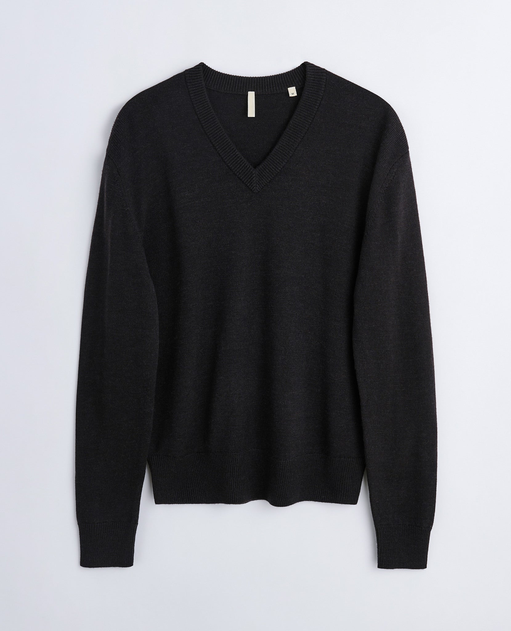 A knitted v neck jumper in a classic Moon fit. Knitted with 100% fine Merino yarn.