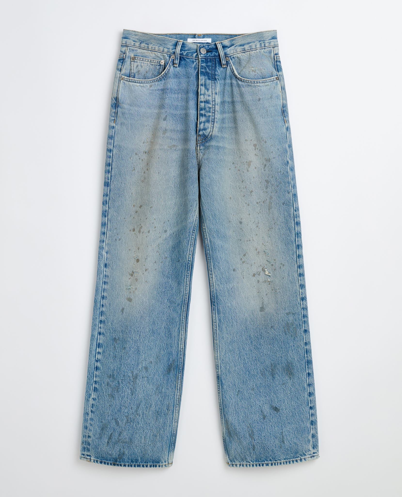 - Washed in a light / mid blue indigo classic stonewash, with paint spots