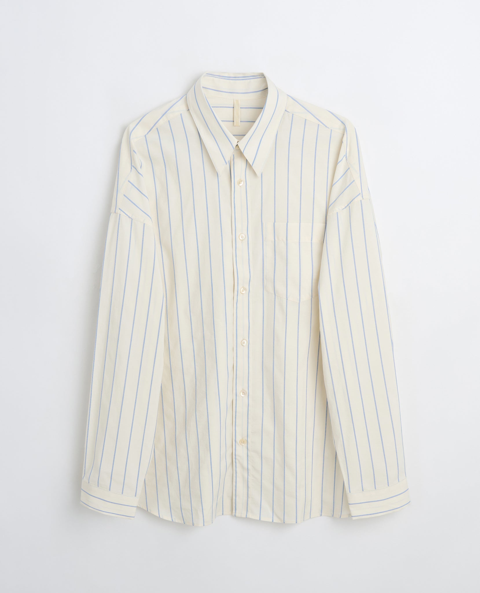 Loose shirt in a soft hand tercel mixed fabric with bright blue coupé stripe