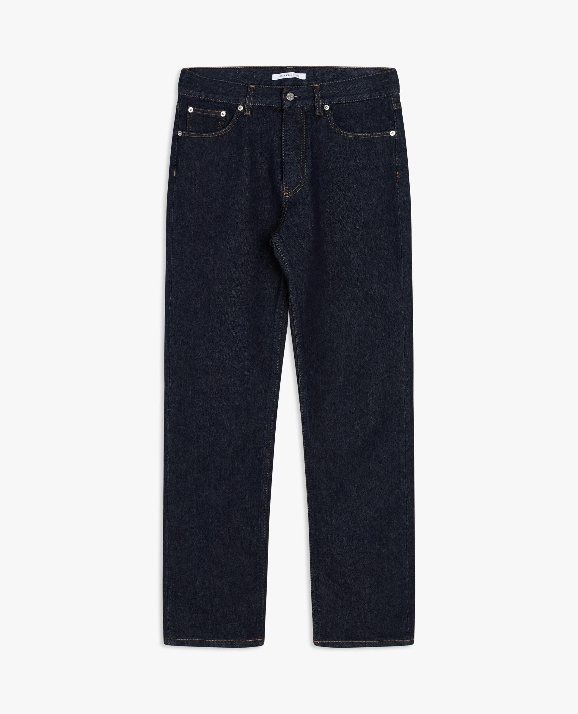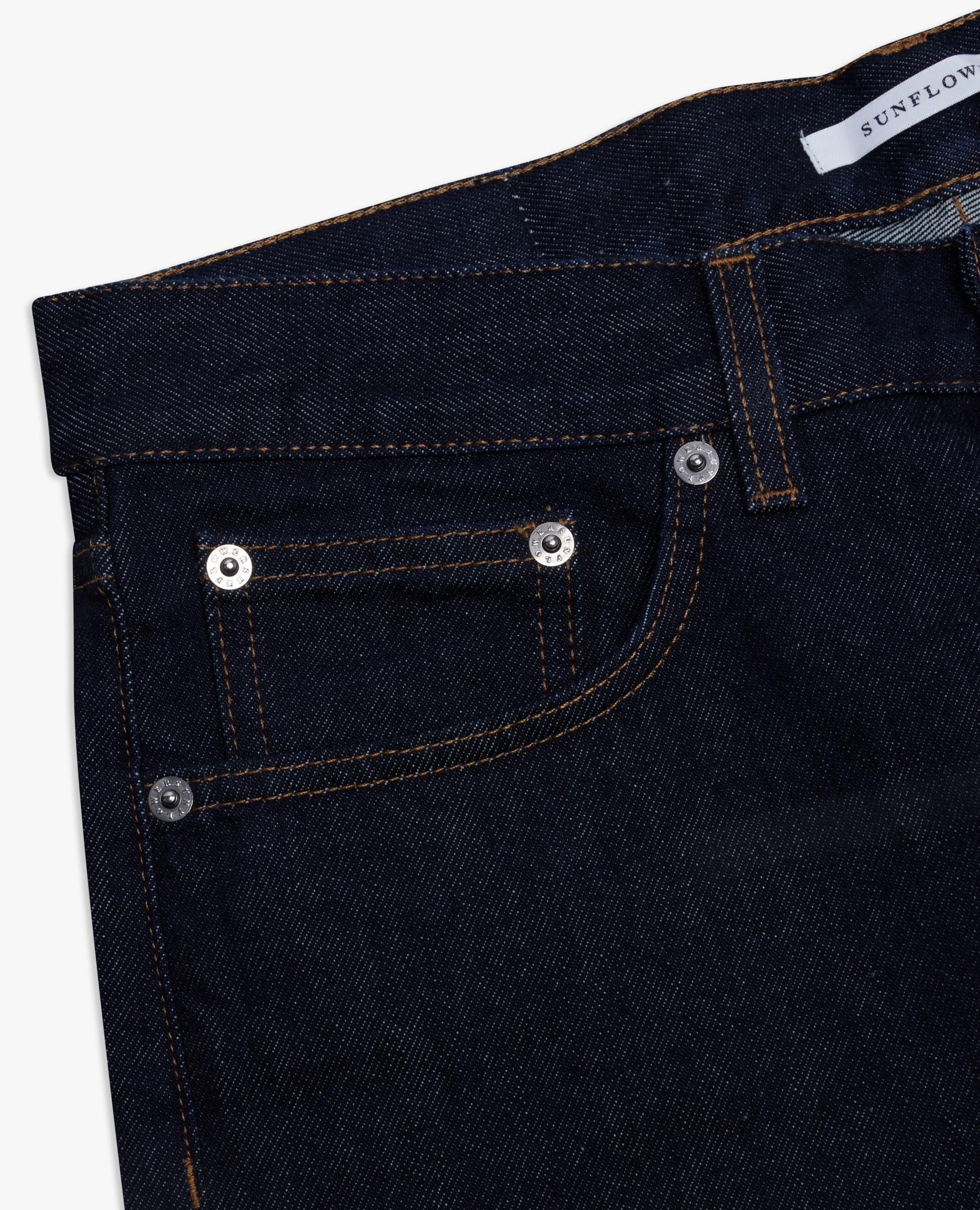 Classic regular-fit Italian-made jeans. Made of 13,5 oz Italian denim spun from GOTS-certified organic cotton. Features five pockets (two back pockets, two front pockets, and a watch pocket) and a button fly. Complete with OEKO-TEX-certified recycled metal trim and an environmentally friendly blue rinse wash.