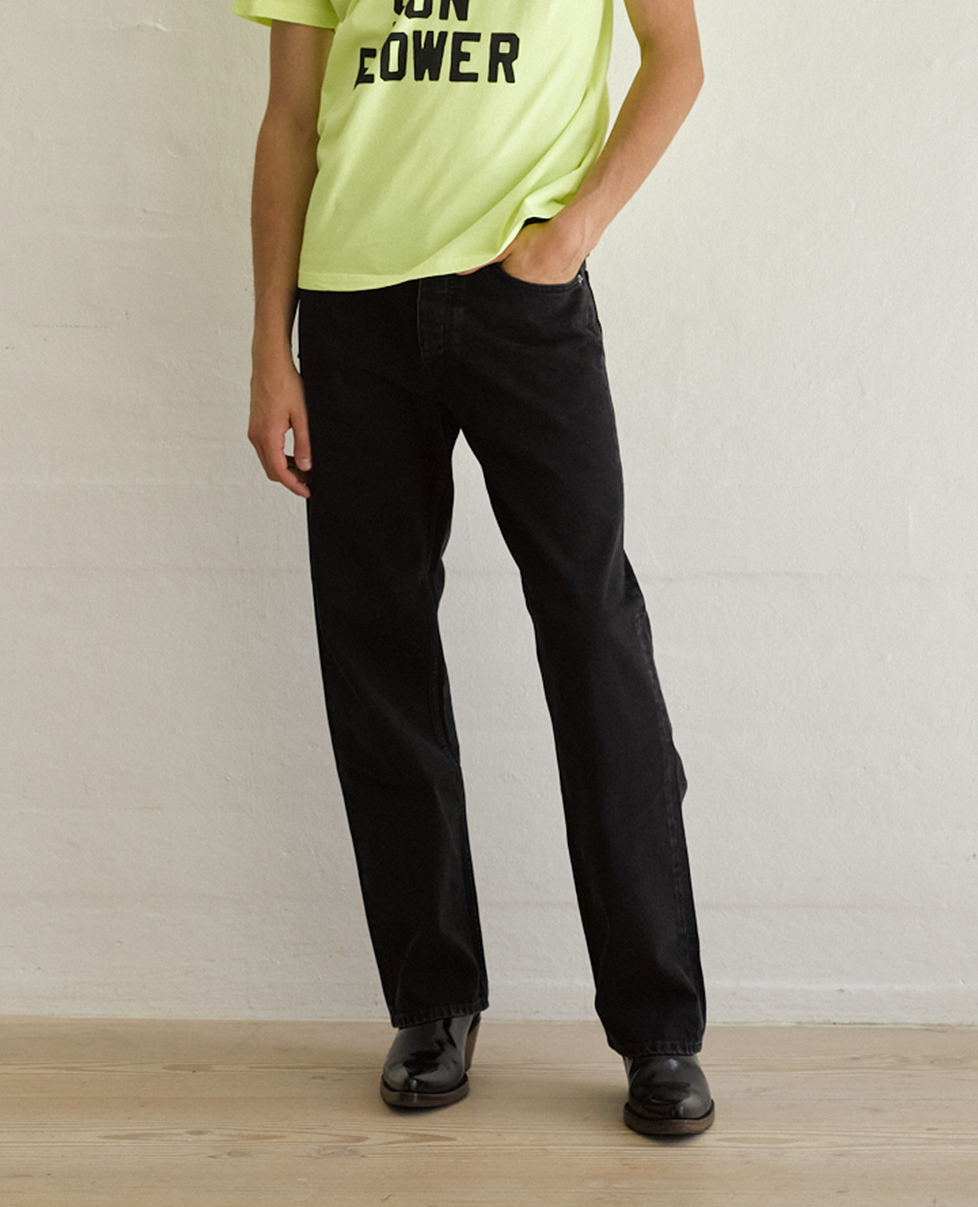 Classic regular-fit Italian-made jeans. Made of 13,5 oz Italian denim spun from GOTS-certified organic cotton. Features five pockets (two back pockets, two front pockets, and a watch pocket) and a button fly. Complete with OEKO-TEX-certified recycled metal trim and an environmentally friendly black wash.
